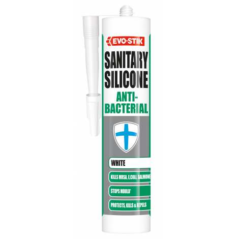 EVO-STIK Anti-bacterial Sanitary Silicone Sealant is a high quality, moisture curing sealant, ideal for interior use around kitchens and bathrooms. Its anti-bacterial properties kill common bacteria and prevent the growth of mould and fungi. The sealant has excellent adhesion to non-porous surfaces and is ideal for jointing between worktops, sinks, basins and tiled areas.